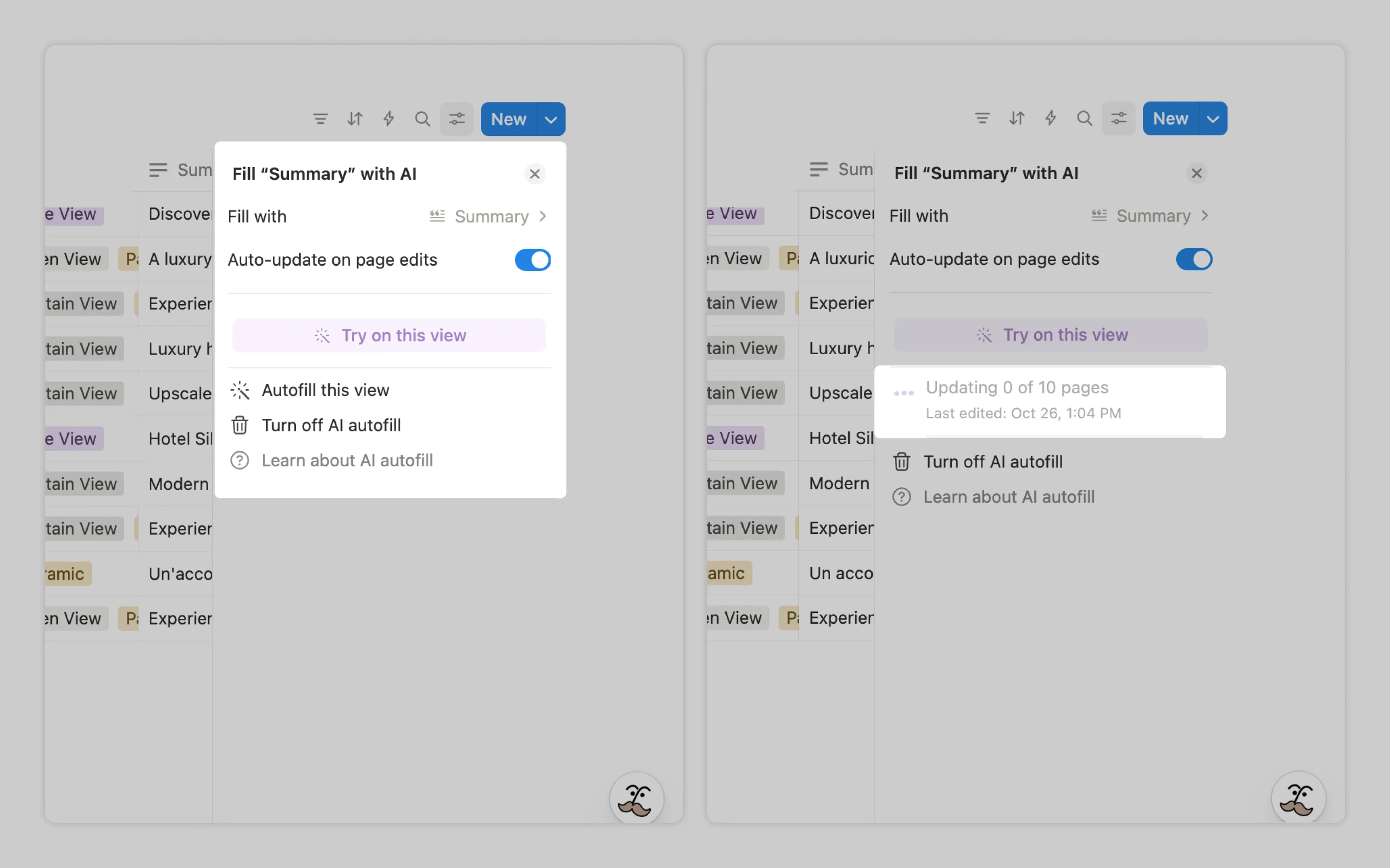 Notion lets users toggle auto-update on and off. When it’s on, Notion refreshes the AI content a few minutes after significant page changes.