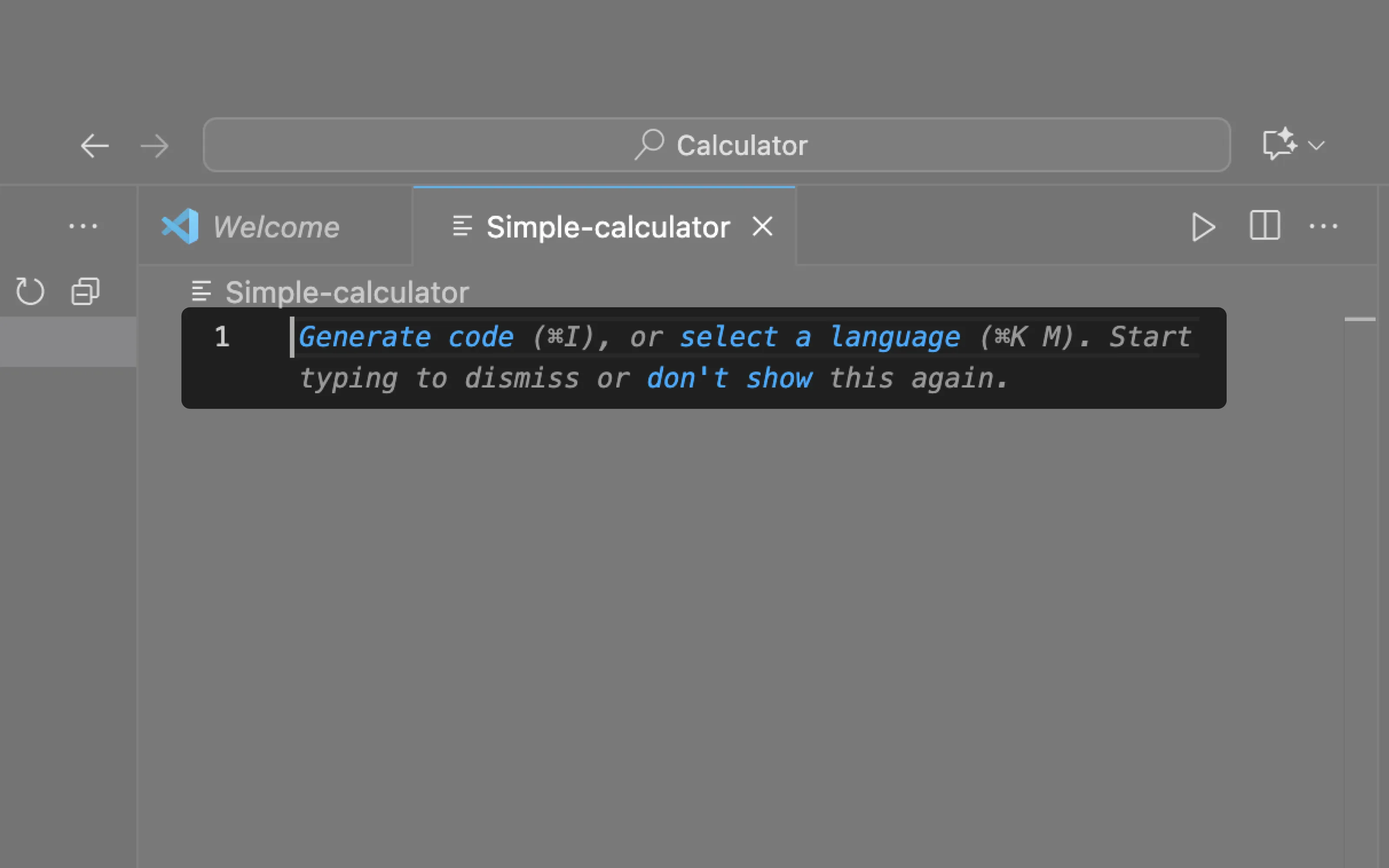 VS Code uses empty states to suggest generating code to kick-start a project.