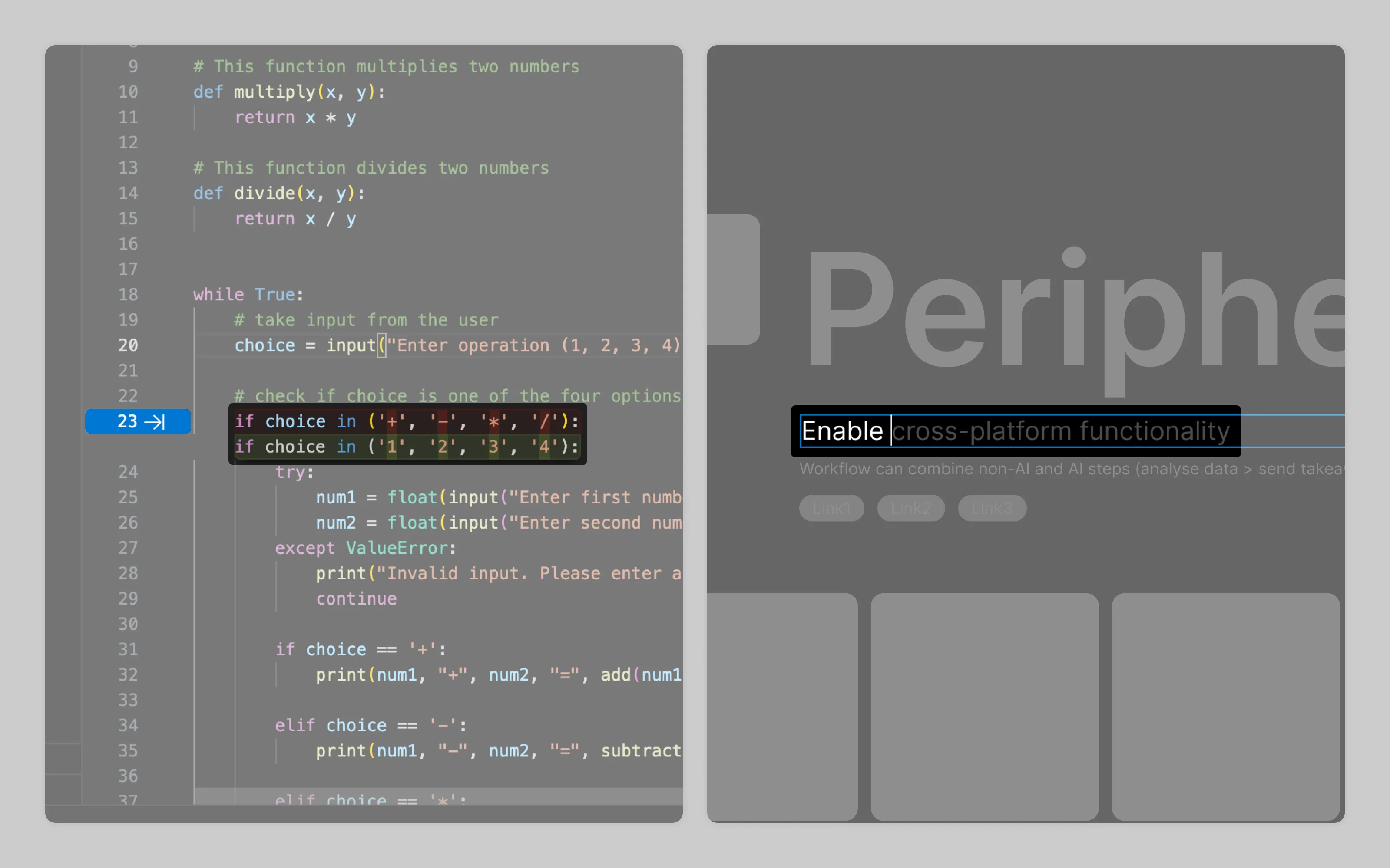 VSCode shows proposed code highlighted in green. Figma previews text completions in grey color