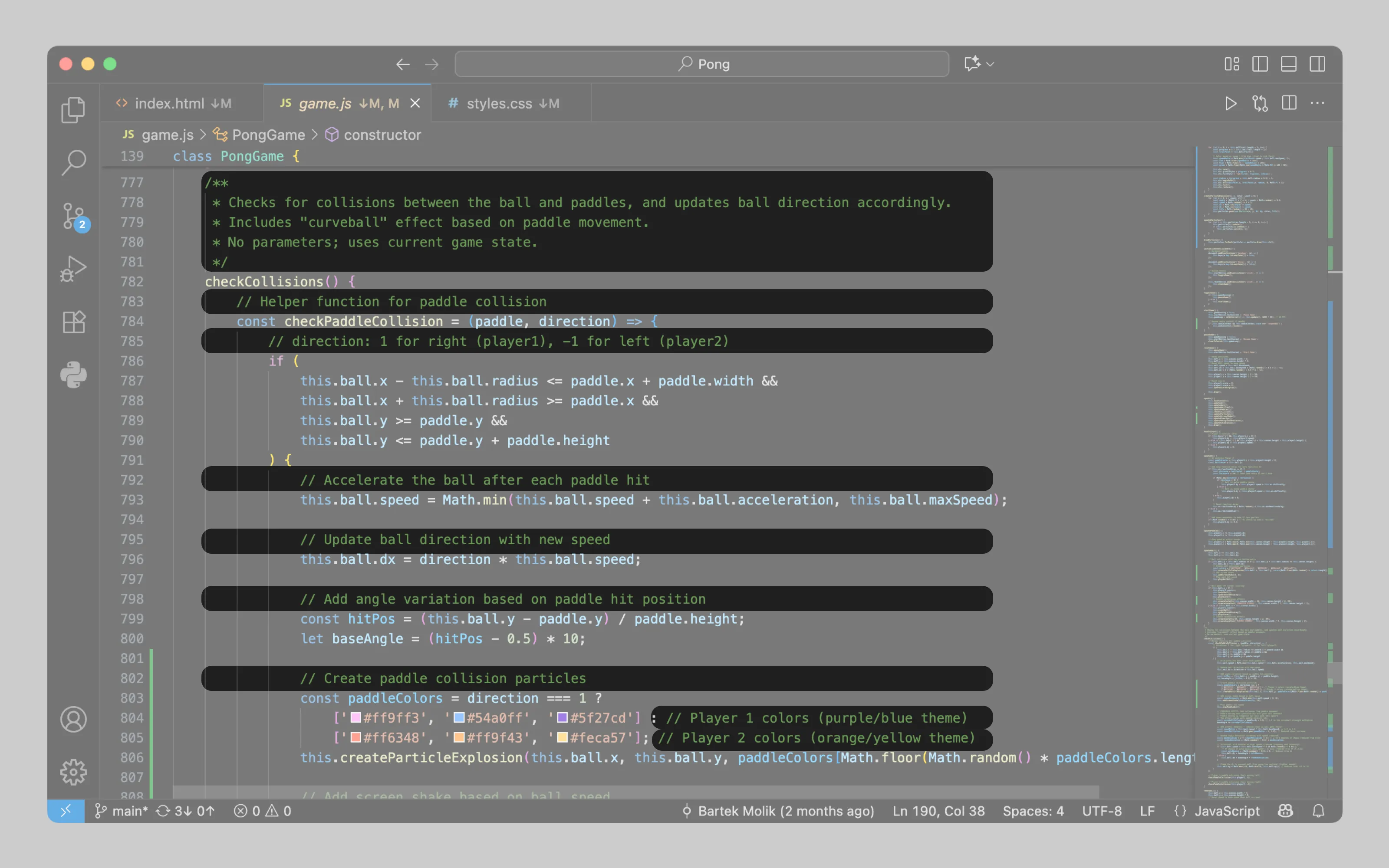 VSCode Copilot comments generated code inline, explaining what was added and why during its workflow.