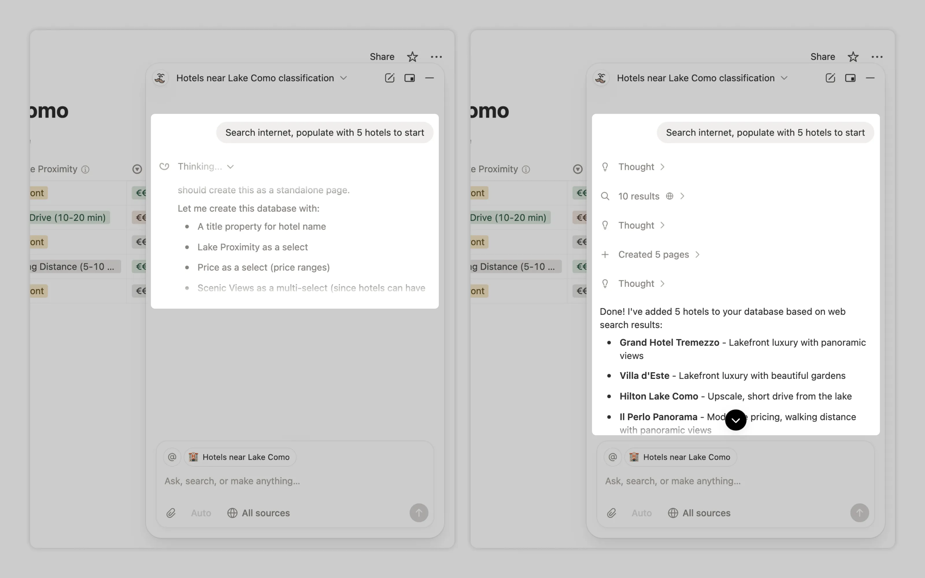 Notion neatly displays each workflow step in real time, then collapses completed steps into accordions users can expand later for review.