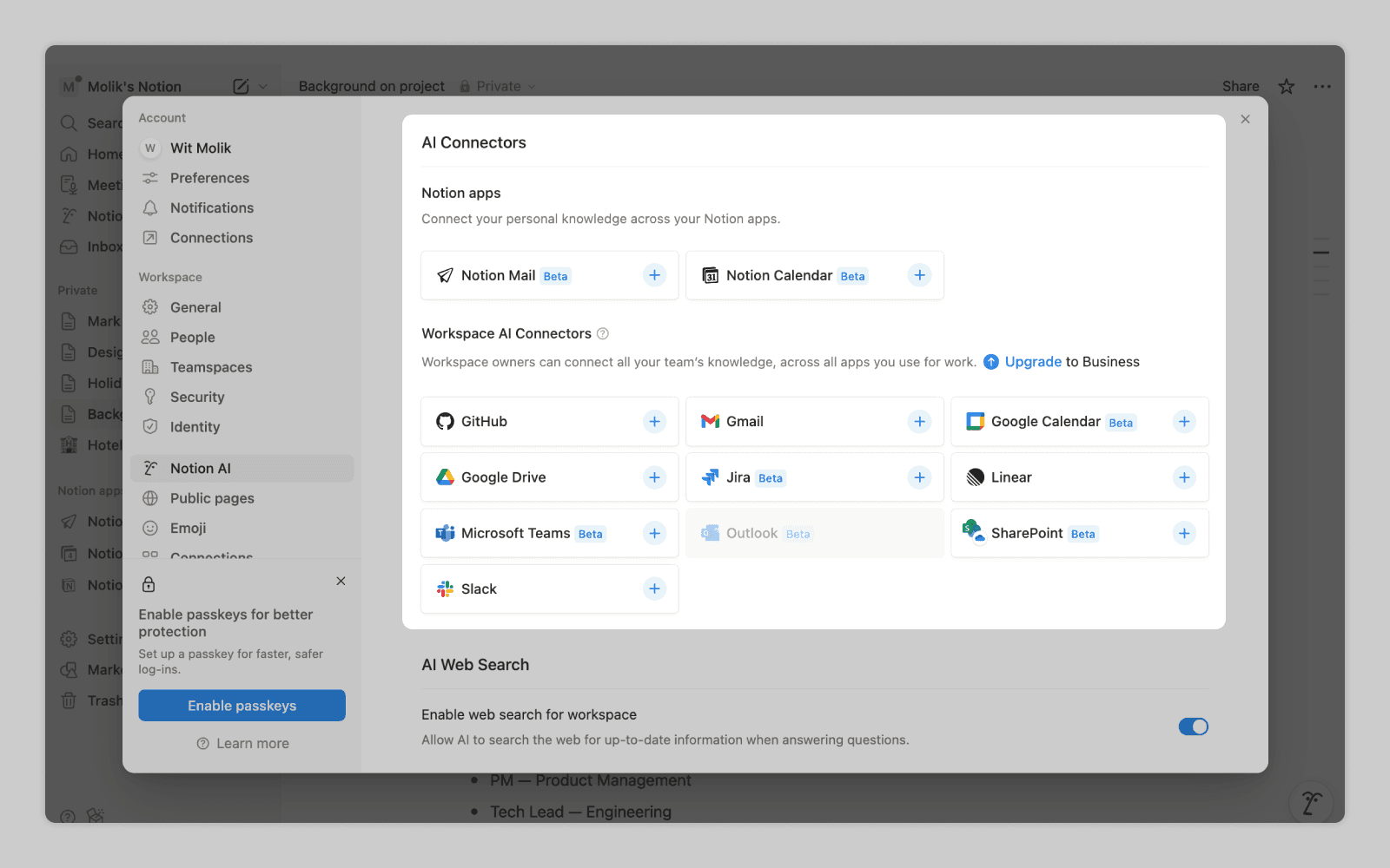 Notion lets users link additional peripheral sources for AI to reference.
