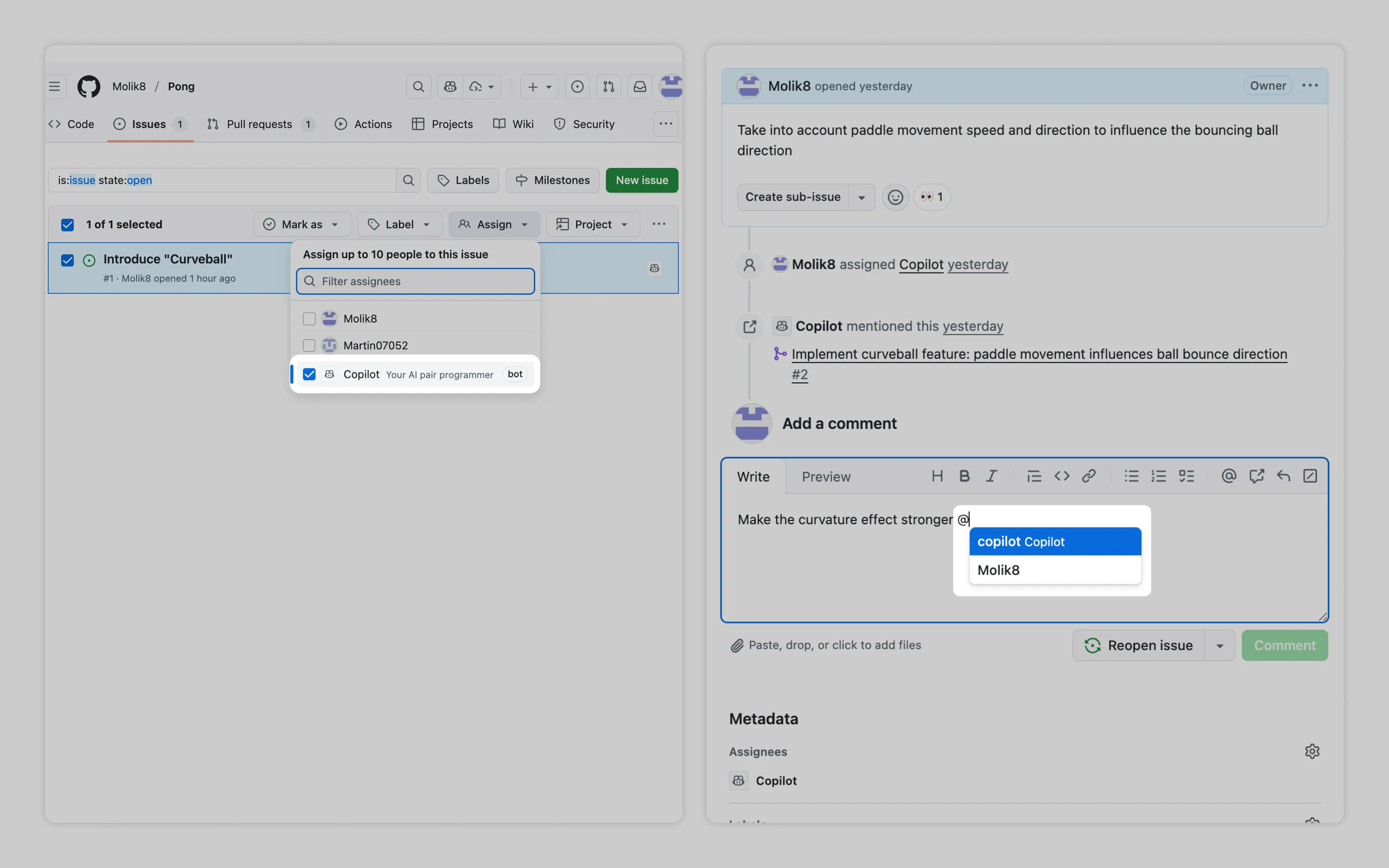 A unique inline presence frames AI agents as coworkers. On GitHub, users can delegate a ticket to AI and converse with it using the same UI people use to collaborate with each other.